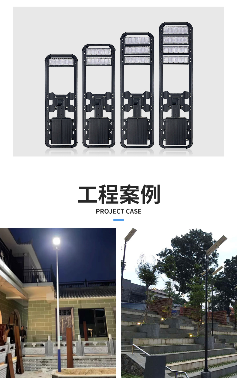 2.此款材质为铝合金,万向节套筒底座,外置电池盒,方便安装和后续更换电池,以及路灯的维护。